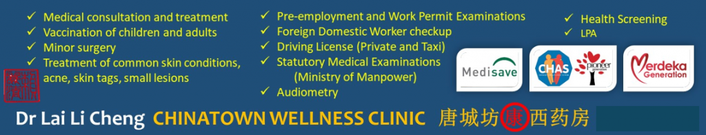 Our doctors are all Family Physicians registered with the Singapore Medical Council and Designated Workplace Doctors with the Ministry of Manpower. Our principal resident physician, Dr Lai Li Cheng (and some visiting physicians) also has additional training in Geriatric Medicine (care of the elderly), Family Practice Dermatology (skin health), Occupational Medicine (workplace health) and Diving Medicine.